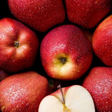 Iconic Red Delicious apples with deep red skin and mildly sweet, crisp flesh.