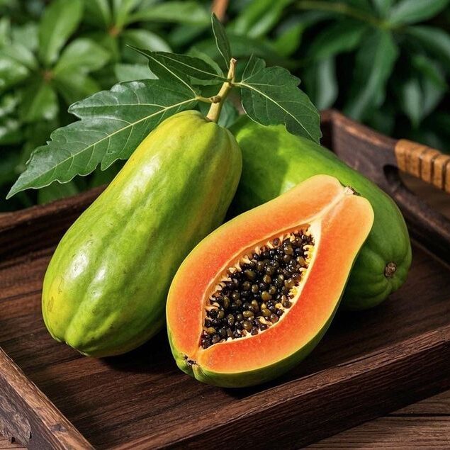 Fresh tropical papaya with soft, sweet flesh and rich nutritional value.